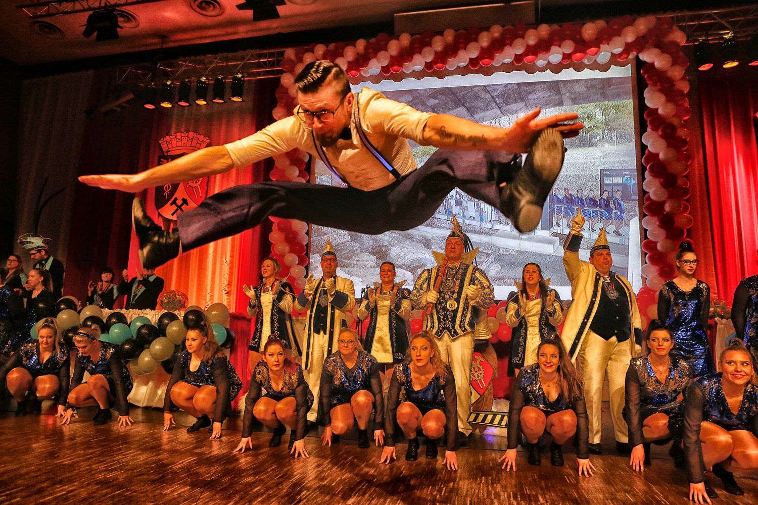 Stadtprinz Rainer I. mit seinem Gefolge erstürmen die Burg