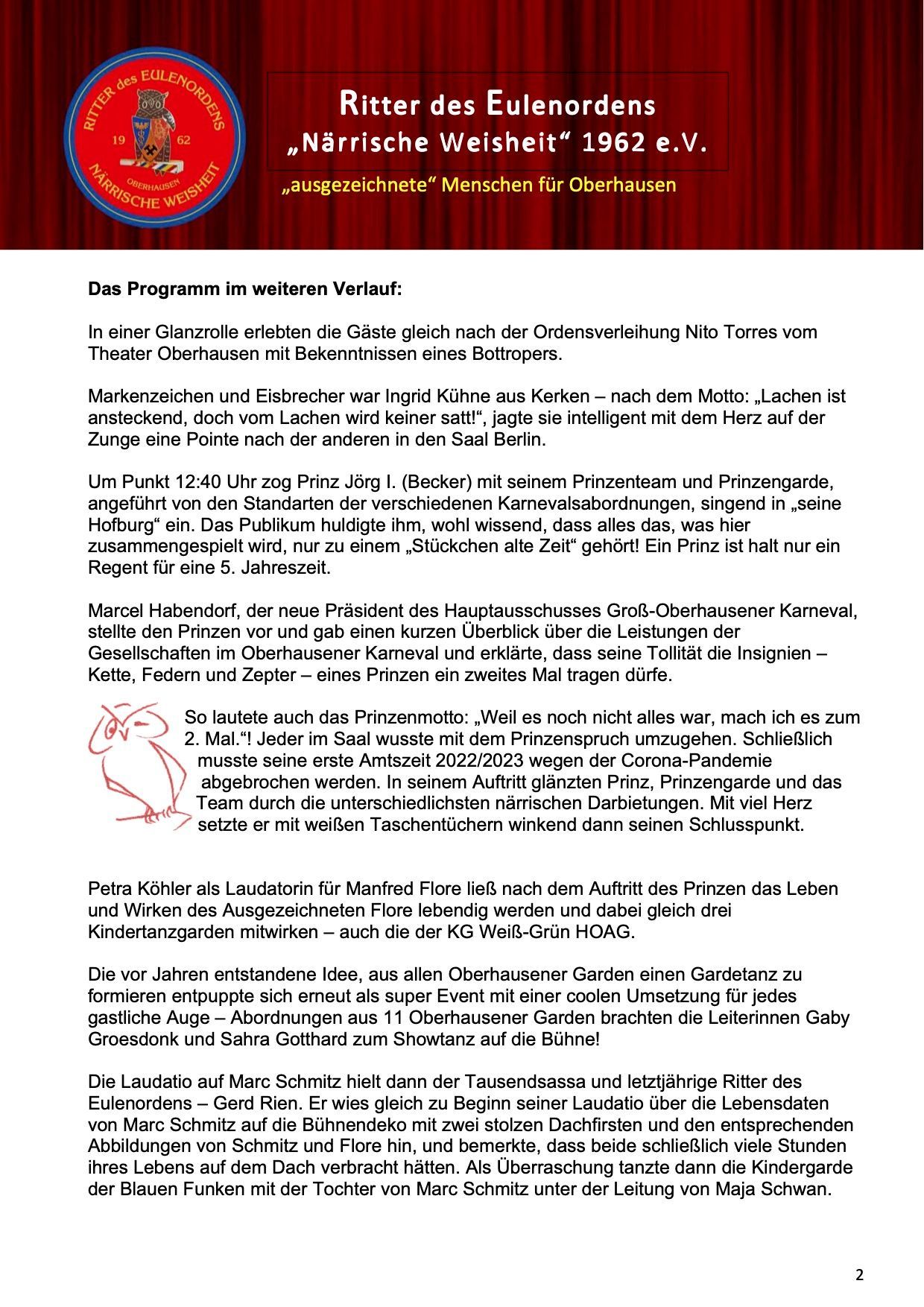 Insgesamt waren ihm die Geschicke des Eulenordens und die Zusammenarbeit im Vorstand sehr wichtig.
