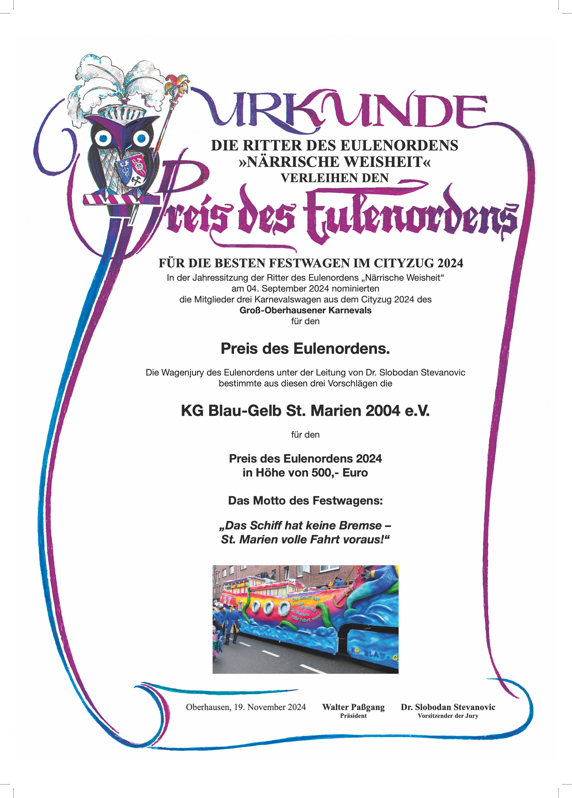 Für die Ritter des Eulenordens „Närrische Weisheit"