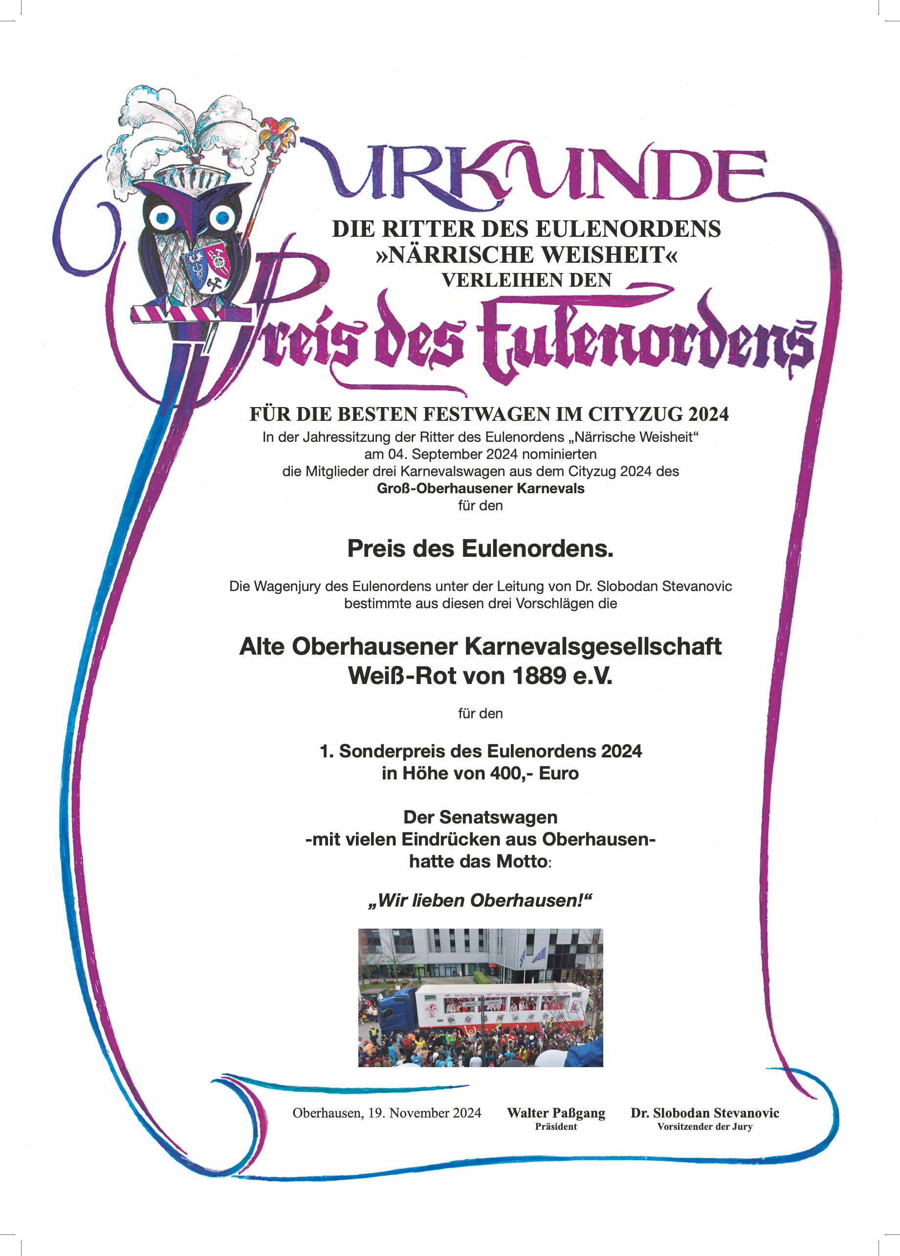 Für die Ritter des Eulenordens „Närrische Weisheit"